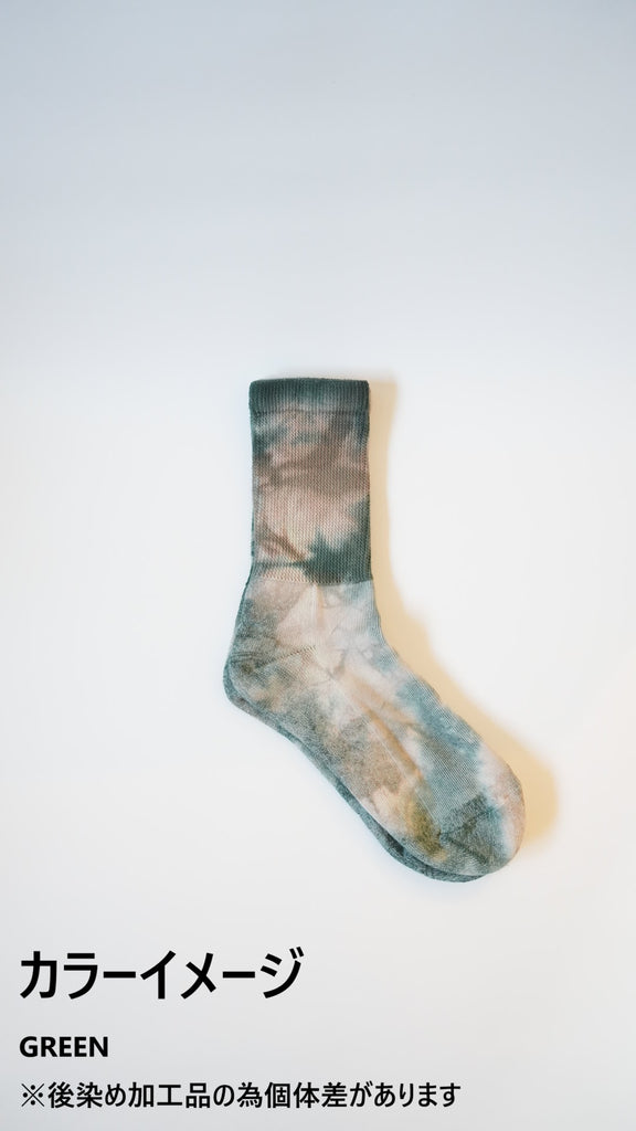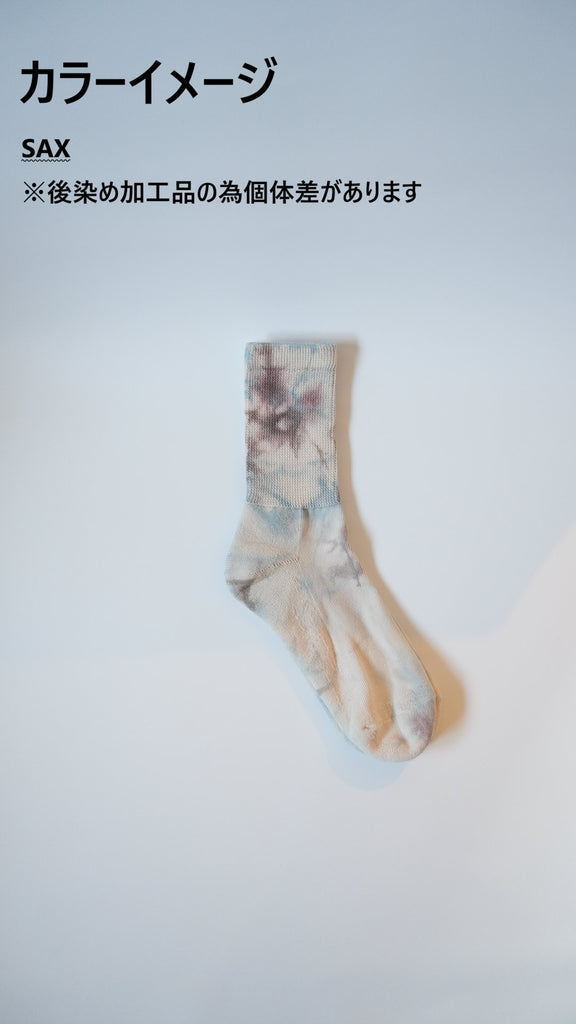 ●OCクルーソックスをベースに、それぞれ2色のカラーを混ぜ合わせたムラ染め加工を施しました